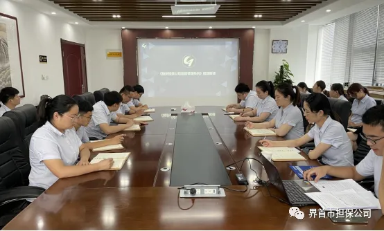 会议上,领学人从条例的特点、内容等几个方面对《条例》进行梳理解读,并着重对文中规定的融资担保公司经营规则进行讲解,公司财务部门对其进行进一步补充说明。