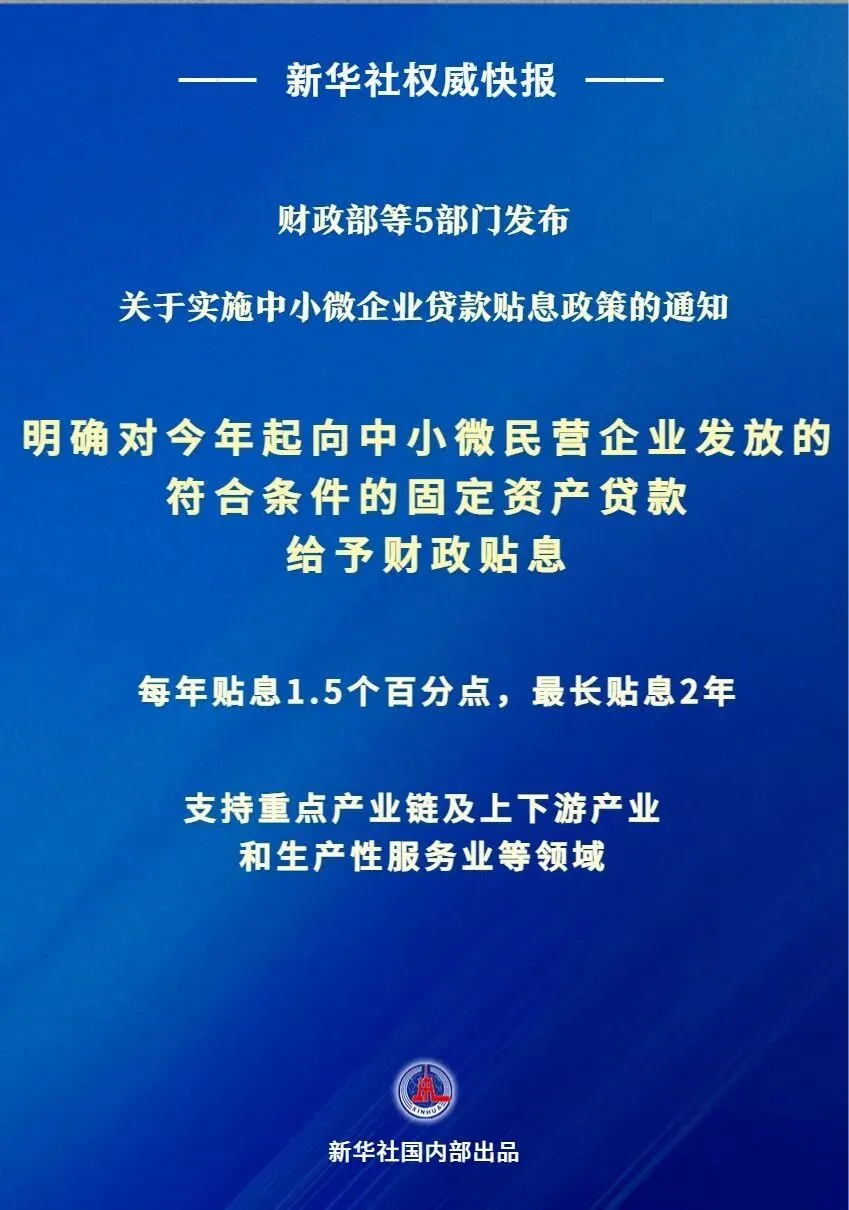 1月20日,财政部、国家发展改革委、工业和信息化部、中国人民银行、金融监管总局等五部门对外发布关于实施中小微企业贷款贴息政策的通知,明确实施中小微企业贷款贴息政策,以“真金白银”支持相关市场主体发展。