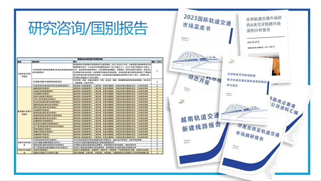 第一时间发布全球轨道交通市场信息和新兴科技动向,超前开展信息搜集与舆情监测,本土化个性化专业化开展国际传播。致力于成为全球领先的轨道交通大数据中心、市场资讯平台、舆情监测中心和国际传播中心。