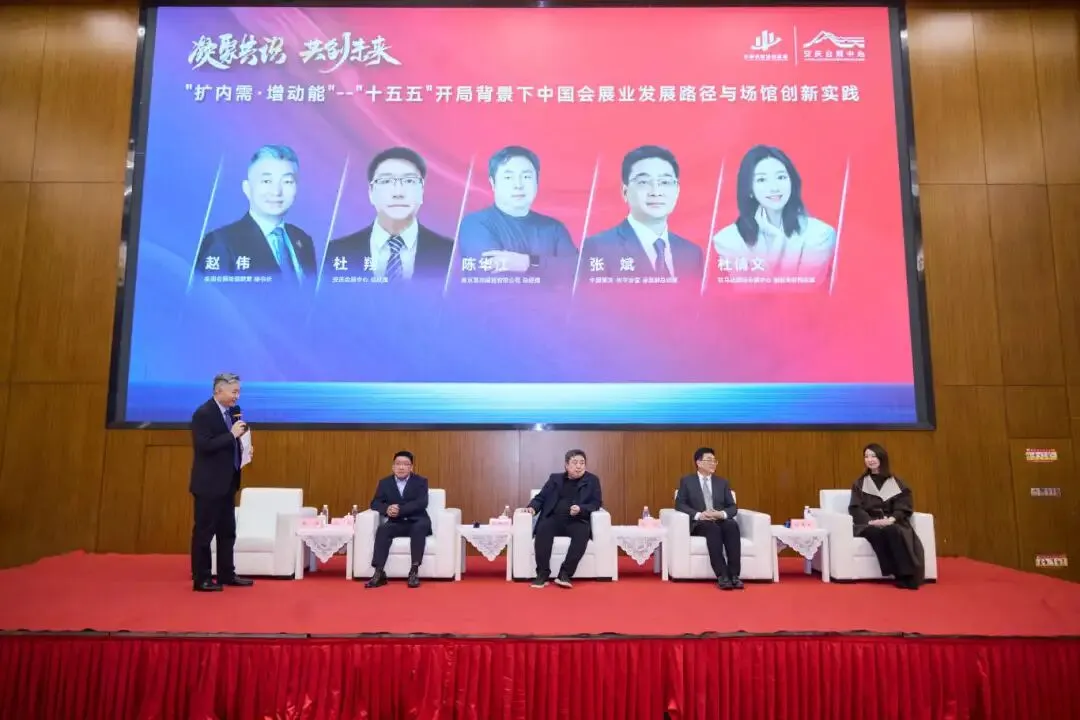 圆桌对话环节以“扩内需・增动能——‘十五五’开局背景下中国会展业发展路径与场馆创新实践”为核心议题,由全国会展场馆联盟秘书长赵伟主持。安庆会展中心总经理杜翔、南京富邦展览有限公司总经理陈华江、中国・重庆科学会堂运营副总经理张斌、驻马店国际会展中心创新业务部总监杜倩文等嘉宾,围绕扩内需导向下会展业功能定位与现实路径、会展场馆培育新动能的实践方向、未来3-5年会展业与场馆创新发展重点等关键话题展开热烈讨论,碰撞出诸多富有建设性的思想火花。