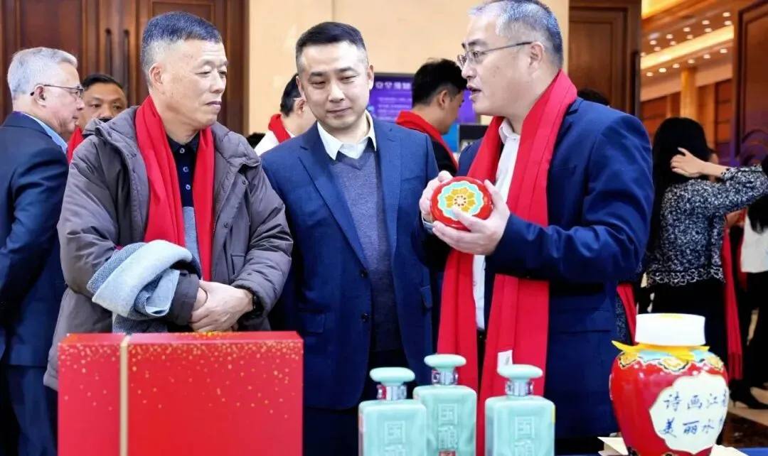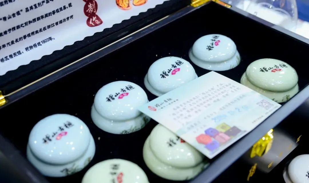 展出当天,绍兴特产展区人气爆棚,古越龙山黄酒、平水日铸茶、千年古香榧等特色产品集中亮相,吸引众多嘉宾驻足品鉴。
