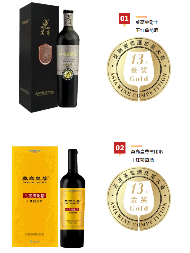 4月4日,第十三届亚洲葡萄酒质量大赛榜单揭晓,莫高金爵士、莫高皇尊黑比诺双双喜获金奖!