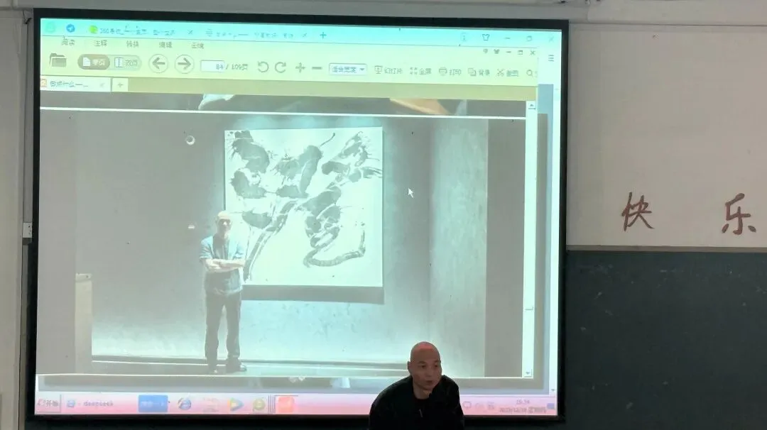 此外,老师还分享了自身艺术创作的实操经验,包括材料创新(如茶水、大漆在宣纸上的创作)、展览组织的全流程筹备(明确展览性质、媒体发布、场地布置等)、作品IP化与商业应用等内容,为会展创意的落地与转化提供了具体的实践思路。