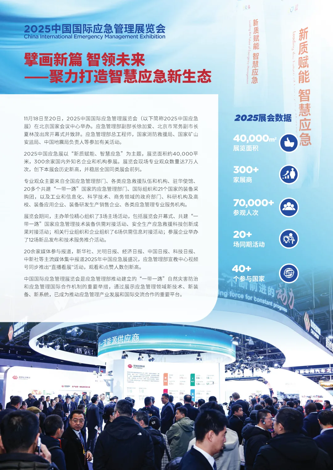 2025年11月18-20日,作为“一带一路”自然灾害防治和应急管理国际合作机制的重要举措,2025中国国际应急管理展览会在北京国家会议中心成功举办。