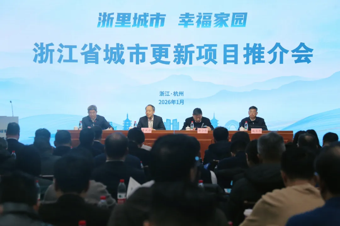 1月20日上午,省建设厅在杭州举办全省城市更新项目推介会,搭建政银企高效对接平台,助力我省大力实施城市更新行动。省建设厅党组书记、厅长李跃旗出席会议并致辞,省自然资源厅党组成员、副厅长许小忠,省建设厅党组成员、副厅长姚昭晖、施卫忠参加会议。