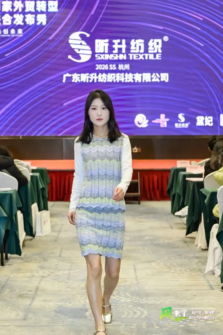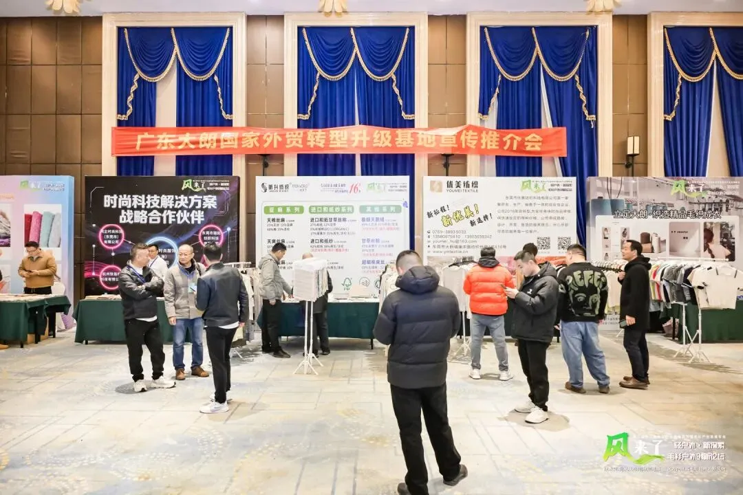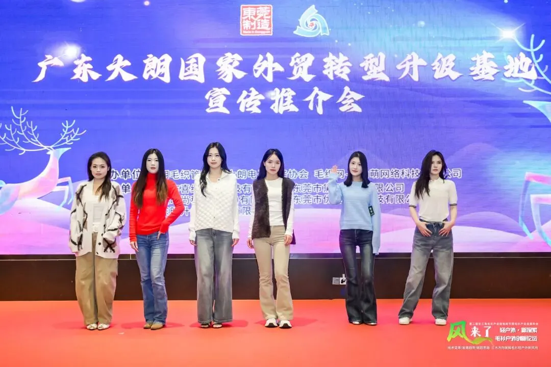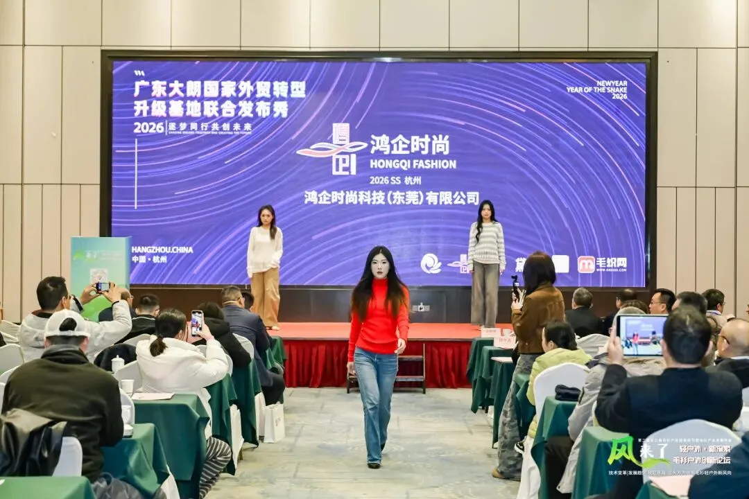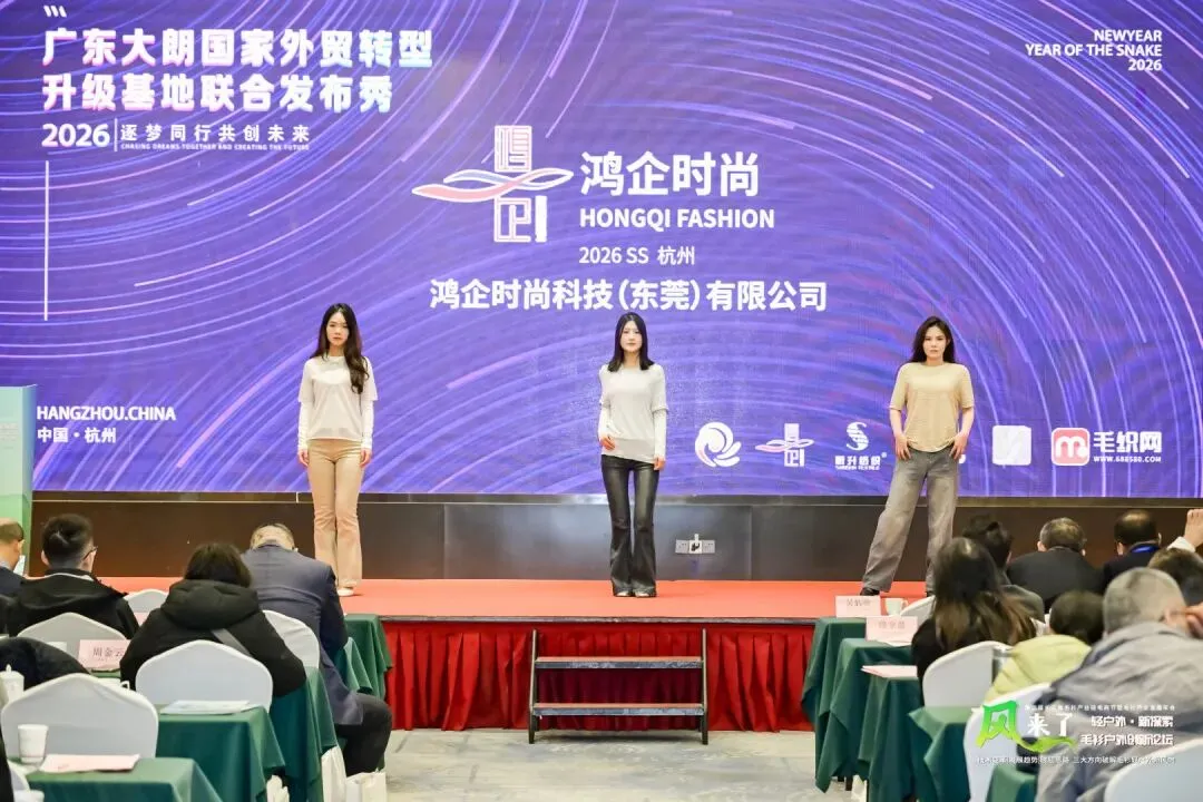 2026年1月9日,杭州临平迎来了“广东大朗国家外贸转型升级基地宣传推介会”。活动现场,黛妃、昕升、优美、喜纺、鸿企、杉励萌等6家大朗代表性毛织企业携手亮相,通过动态走秀、静态展示与品牌采购对接等形式,向华东地区时尚界、采购商全面展示大朗毛织的产业实力与创新成果。