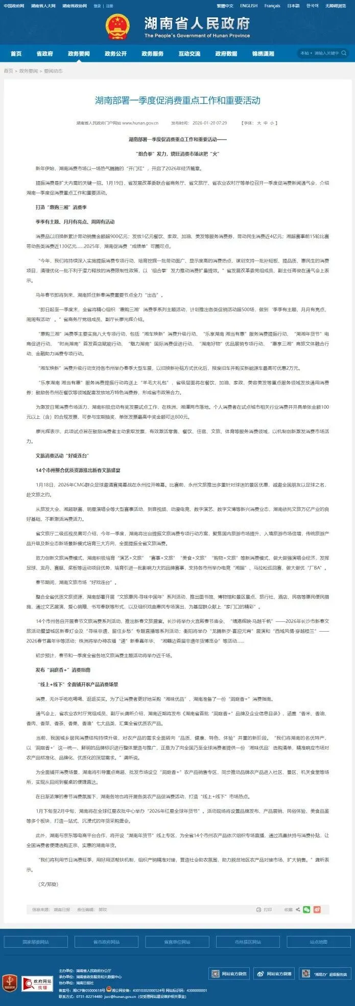 新年伊始,湖南消费市场以一场热气腾腾的“开门红”,开启了2026年经济篇章。