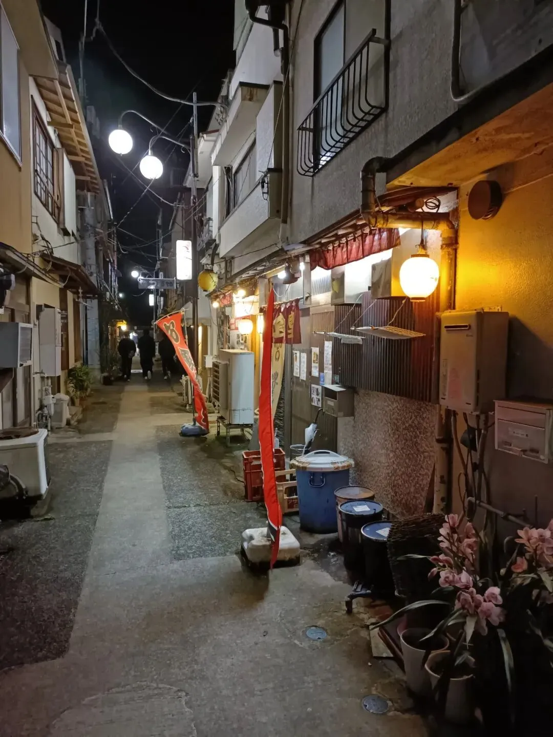 再香艳也要喂饱肚子才有力气,匆匆下楼去觅食,在酒店前台还特意确认这是天然温泉,而不是天朝墙内的热水加硫磺粉。得到肯定答复,冲到不见什么人影的大街上,沿着谷歌地图上显示的刀叉图案和评分寻找餐厅。碰了几次壁以后,才意识到这里不像第一城,各种餐厅酒馆藏在小巷深处里等待食客至深夜。几家小餐馆不是休息就是已经下班反正他们不管我们饥肠辘辘。这也在后面的行程中得以印证,小地方就要早早吃饭,早早上床。向另一个方向继续尝试,越走越灰心,大部分显示的餐馆都是一片黑暗,貌似根本没开门。默默鼓励自己,来酒店路上看到一个7-11,最差还可以买啤酒和便当充饥。终于在拐进最后一个巷口的刀叉前看到明晃晃的烧肉二字和外墙上呼呼排风扇吐出的浓烟,有一种终于找到组织的感觉。