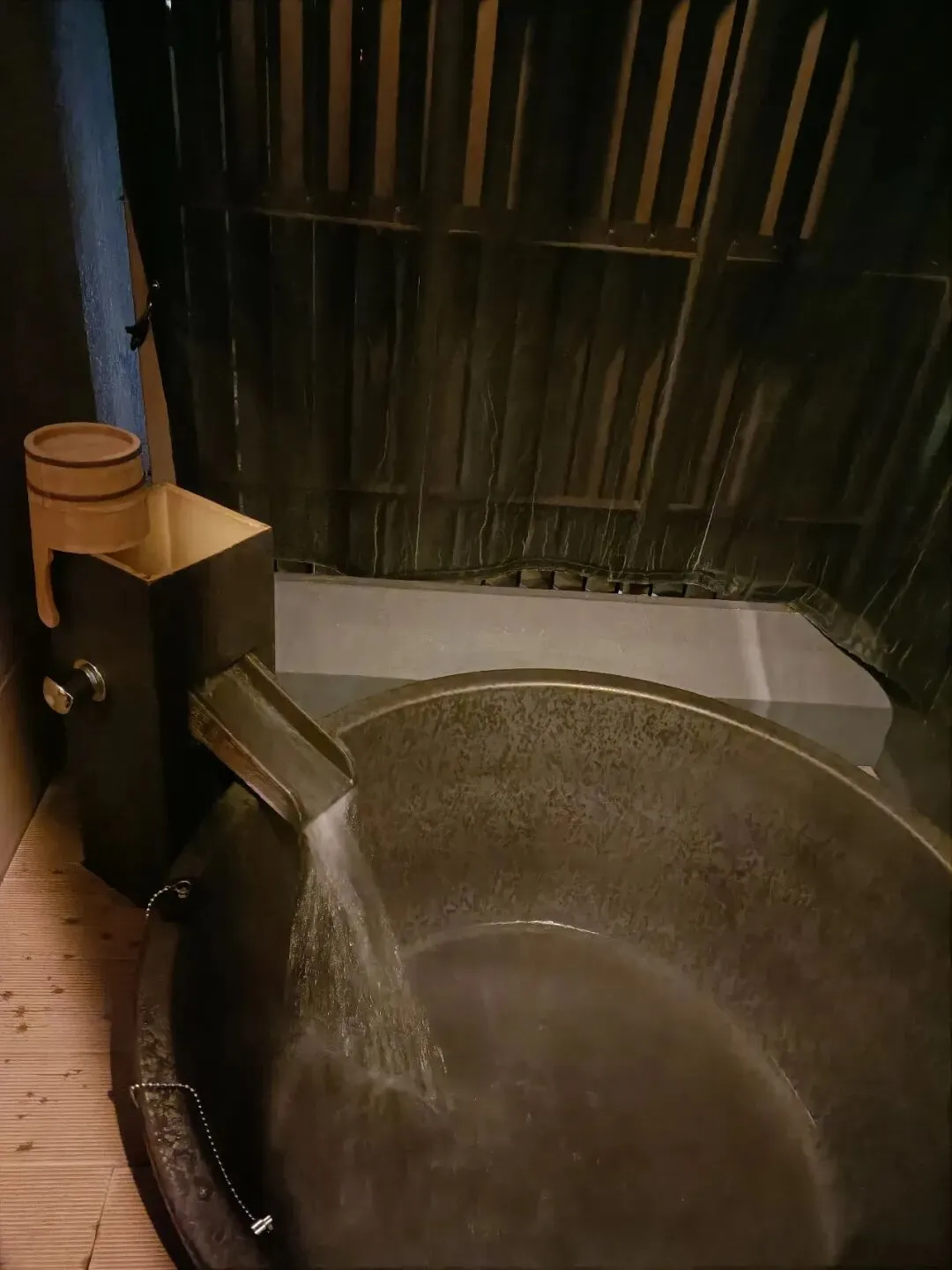 疲惫的在站前小广场坐上出租车,一路从坐落于半山的火车站向下朝海边的酒店驶去。虽然才不到六点,可是街上已经人迹罕至,店铺也是早早打烊。几分钟赶到酒店,照常的办理手续,进到房间放下行李。从早上出门到现在还没有正经吃饭,虽然新干线霓虹第二城站上买了两个便当加几罐啤酒,但是此刻还是饥肠辘辘,简单看了一下酒店房间,一如既往的小,通往阳台的区域有一个小小的榻榻米,我坐下基本背靠洗手间的墙脚就蹬到房间墙壁。打开卫生间居然有小惊喜,卫生间和榻榻米外面都是阳台,但是在卫生间外面的阳台居然有一个浴缸,还用隔间和挡板把外界和阳台隔离开来形成一个私密空间,立刻我的脑海闪过各种你懂的画面,还有俩个字—私汤。这个酒店订的歪打正着,本来想着到了热海再找Onsen,所以没有特意找自带温泉的酒店,这回方便了。