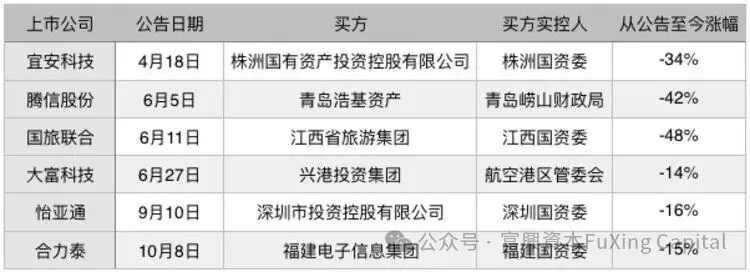 3. 理性收购阶段:2021 年起,国资收购上市公司的趋势放缓,态度更理性、谨慎,收购目标从壳公司转向符合当地产业发展规划、有一定营收和资产规模的上市公司。2021 年收购 45 家,2022 年收购 35 家,2023 年基本退出壳公司交易市场。