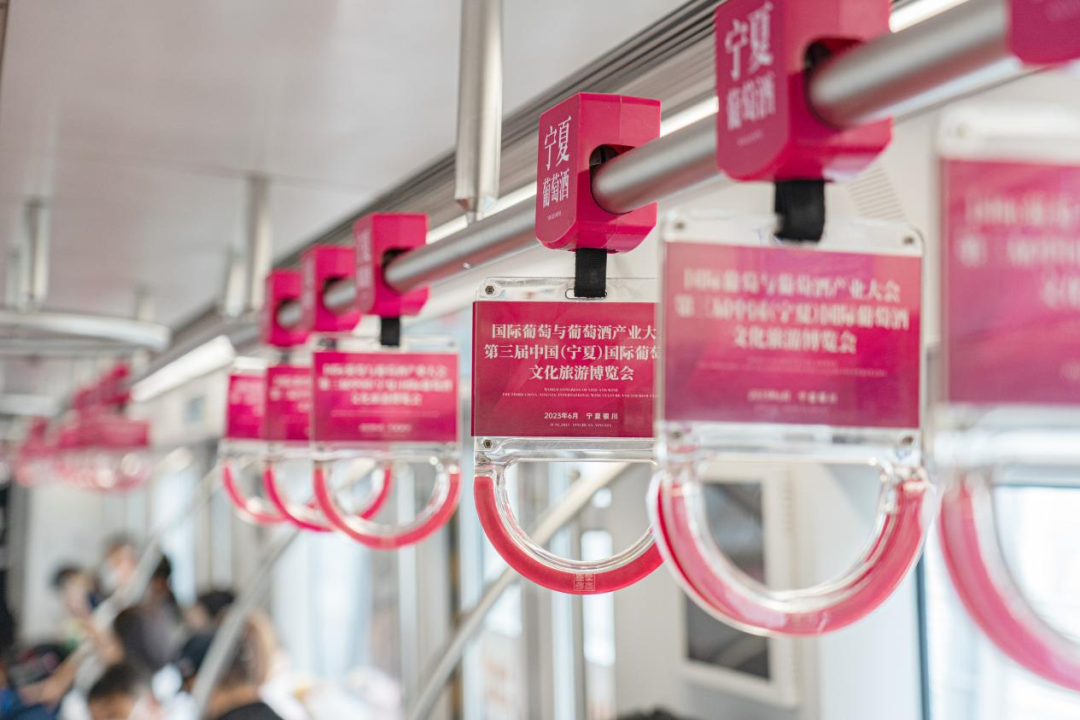 北京地铁1号线是中国建设的第一条城市地铁线路,于1969年10月1日开始试运营,途经天安门、王府井、东单、国贸、环球度假区等重要站点。宁夏贺兰山东麓葡萄酒宣传列车亮相北京地铁1号线,在祖国中心奏响宁夏贺兰山东麓葡萄酒的声音,推广国际葡萄与葡萄酒产业大会、第三届中国(宁夏)国际葡萄酒文化旅游博览会活动,将宁夏贺兰山东麓葡萄酒产区的优质葡萄酒推荐给更多消费者。