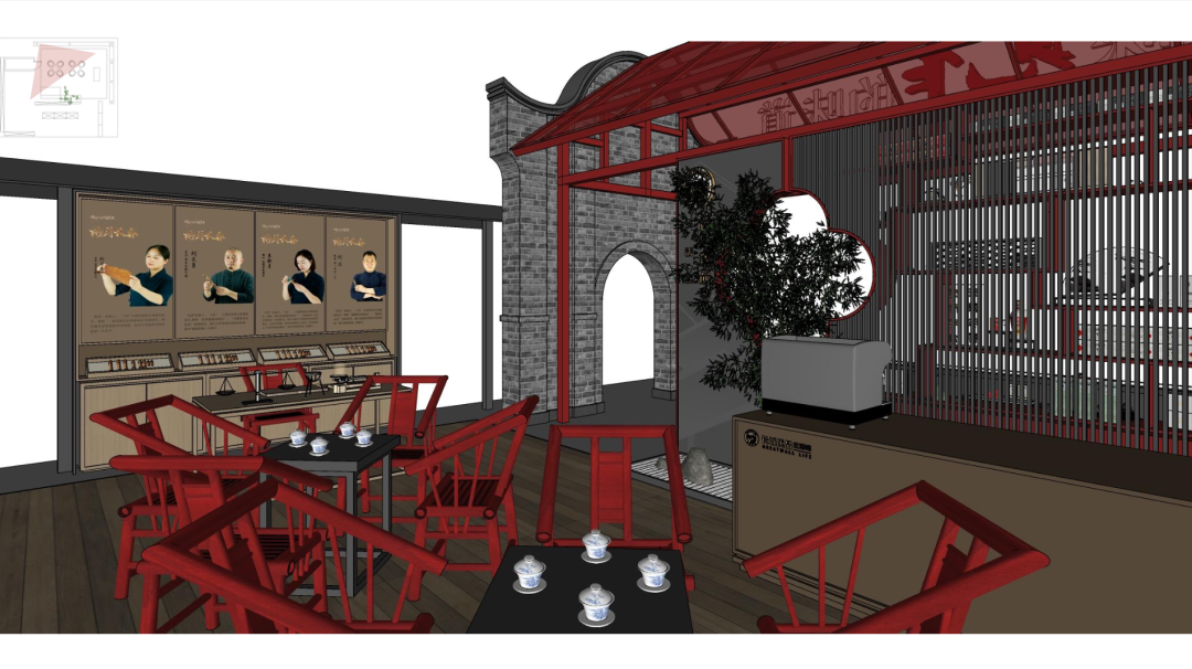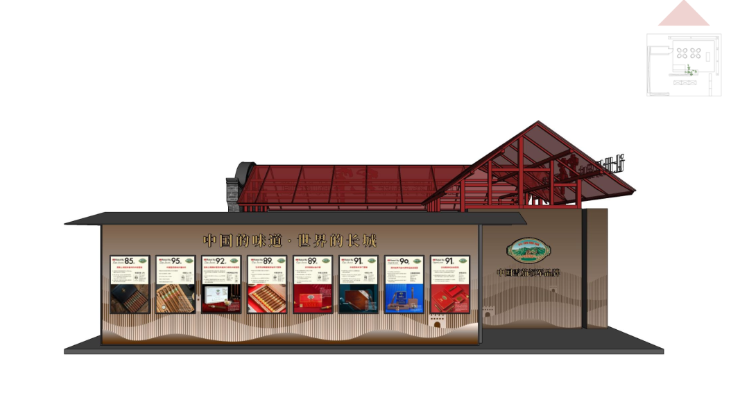 展厅以“红瓦青砖”作为主基调,设计融入了青砖、红顶、竹椅等蜀都元素,“让世界品味宽窄的味道”与老院子中的木架青瓦一起,延续成都自然古朴的气质。