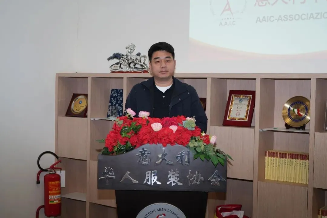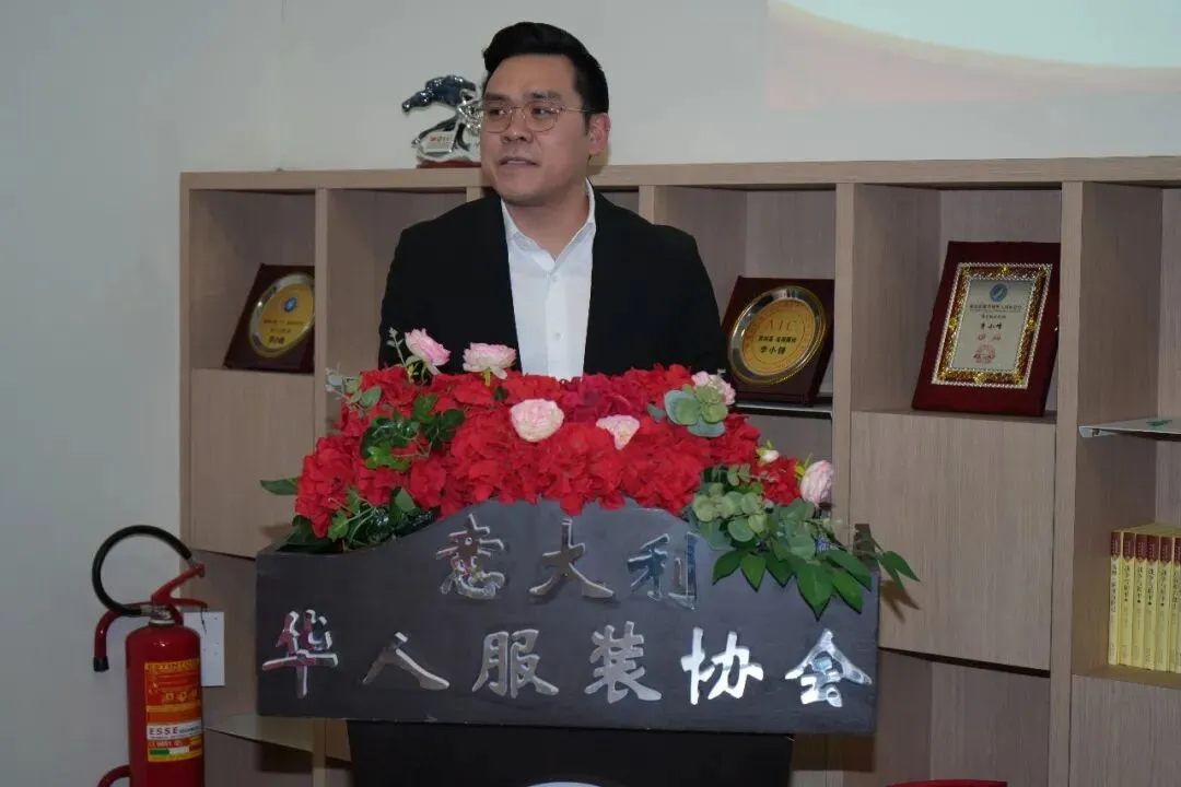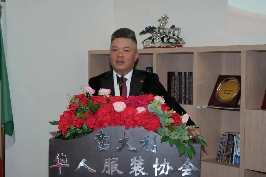▲会议伊始,第三届会长李小锋发表讲话。他回顾了协会成立11年来的发展历程,向全体会员及历届理事会成员致以诚挚感谢,感谢大家长期以来对他本人及三届理事会工作的支持与信任。李小锋会长表示,协会始终秉持“平等、分享、上进、公益”的宗旨,在服务行业、回馈社会方面做了大量扎实工作。他特别提到,协会成立之初开展调研,吸引理事单位加入,并积极加强普拉托IOLO、TAVOLA 工业区的安保工作,为当年普拉托地区治安稳定作出了实际贡献,切实守护了一方平安。此外,在疫情期间,协会成员守望相助、共克时艰,充分展现了华人服装行业的凝聚力与责任感。