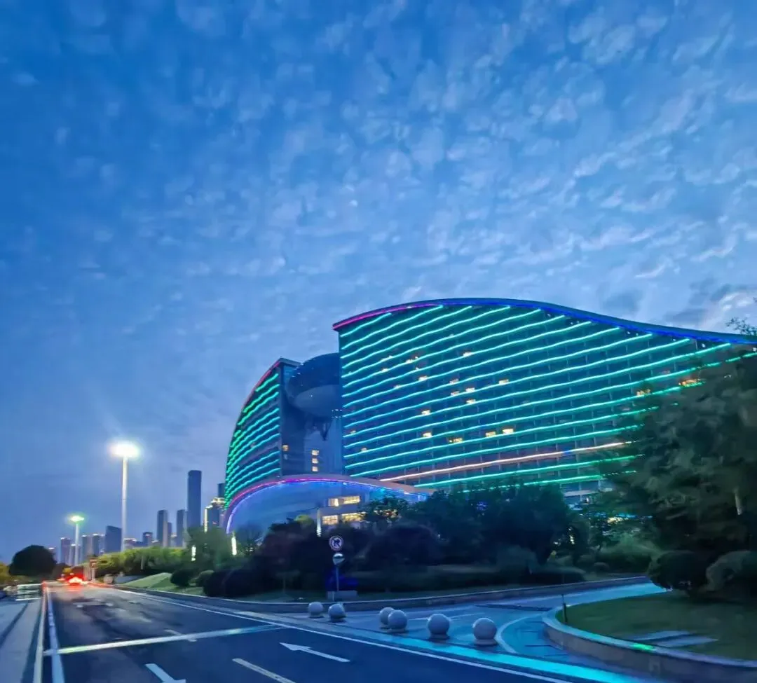 若把武汉比作一幅水墨画卷,那么武汉国际博览中心便是画卷中最浓墨重彩的一笔。它以恢弘的气势,打破了传统建筑的界限,将艺术、科技与自然完美融合。展馆的编钟造型,是对荆楚文化的深情致敬;而流畅的曲线与几何形态,则展现了现代设计的创新精神。站在江边远眺,它如同一艘驶向未来的巨轮,承载着城市的梦想与希望,在时代的浪潮中破浪前行。