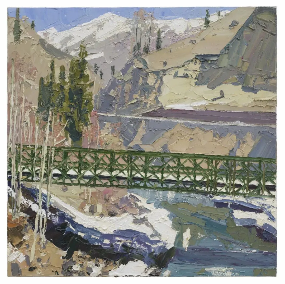 布尔津河上的铁桥 / 80x80cm / 布面油画 / 2023