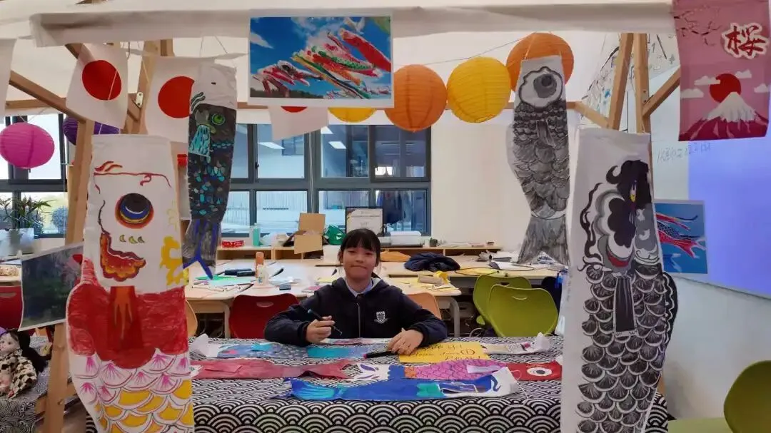 鲤鱼旗绘制区则色彩斑斓,少年们挥舞画笔,用明快的色调勾勒出象征勇气与希望的鲤鱼形象。
