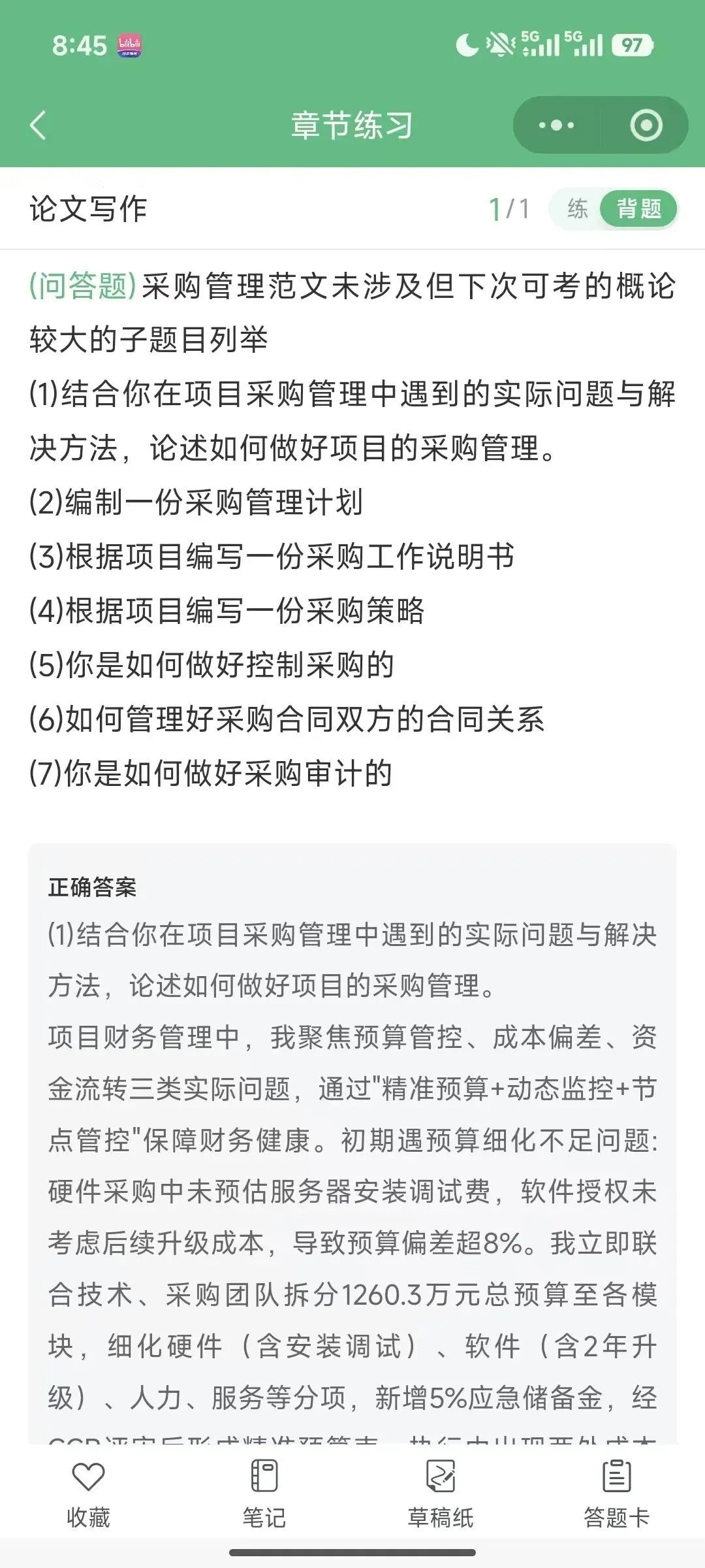 高项论文刷题小程序更新至采购管理