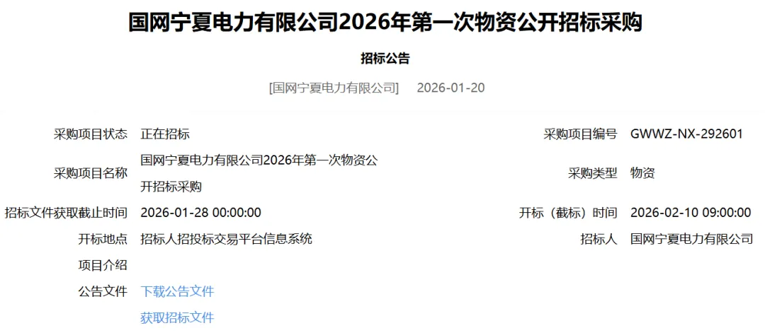 国网宁夏电力有限公司2026年第一次物资公开招标采购招标公告