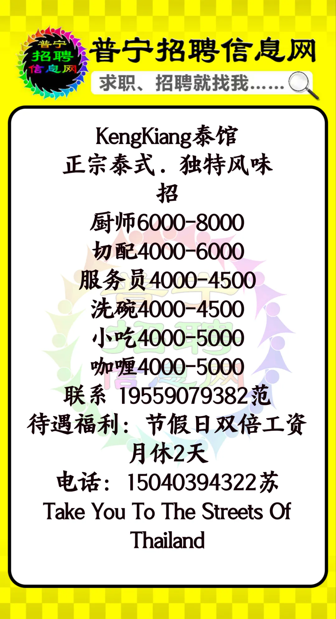 找稳定工作速看!多岗位急招!泰馆/服装/商店等行业全覆盖!