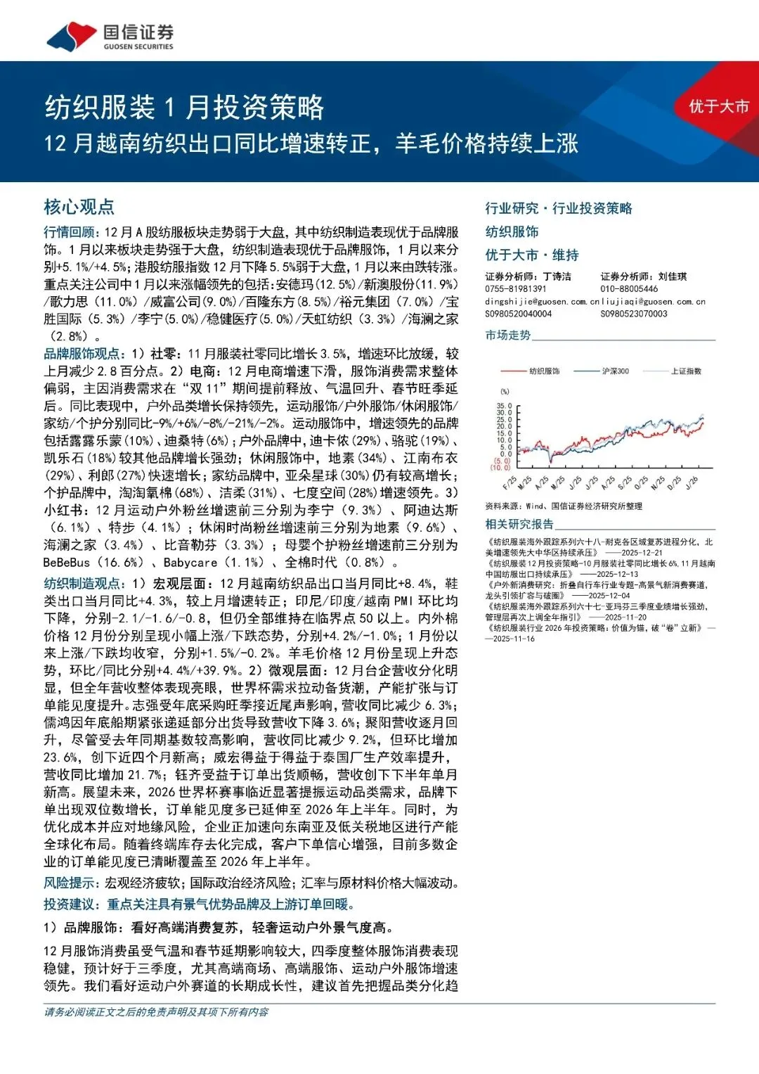 回复暗号:纺织服装行业1月投资策略:12月越南纺织出口同比增速转正,羊毛价格持续上涨-260114-国信证券-23页
