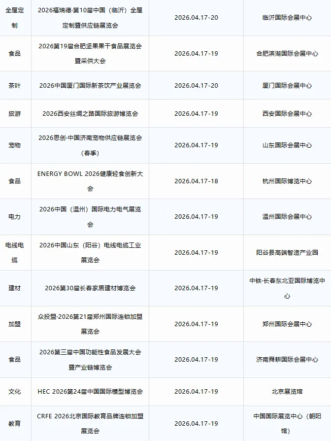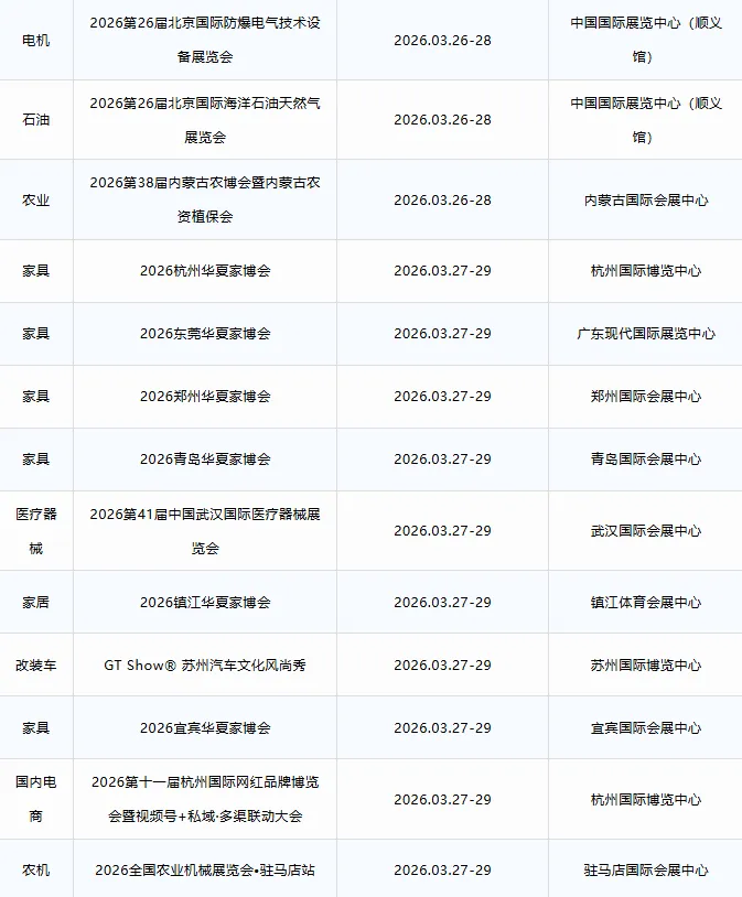 免责声明:以上展会信息由小编从网络收集整理,不对项目规模大小、举办时间等相关宣传的真实性负责,参展商参展、观众观展前,请向主办方和展馆方再次确定展期。更多展会信息请搜索“逛展会”微信公众号并关注。如有侵权,请联系删除。