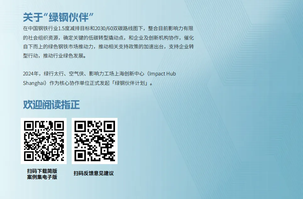 《中国钢铁企业低碳转型实践案例集》立足行业转型实际,系统梳理企业实践经验,凝聚产业共识,既展现企业减碳创新突破,也客观呈现转型面临的现实困境,致力于打造开放共享的行业公共产品,推动政策制定者、金融机构、供应链企业与钢铁生产端的深度对接。