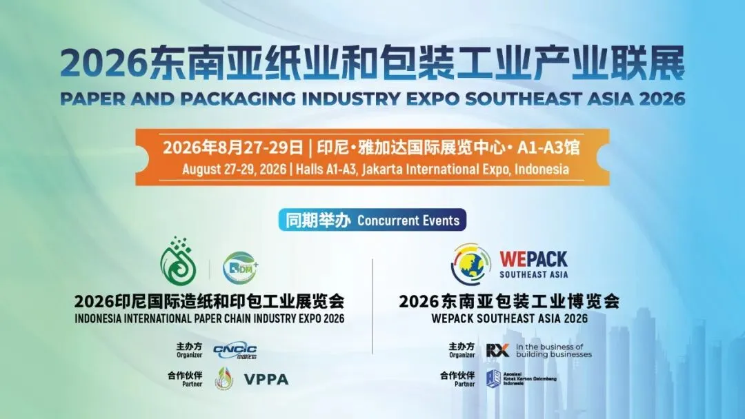 2026 年8月27-29日,印尼国际造纸和印包工业展览会(Paper Chain Expo)和东南亚包装工业博览会(WEPACK Southeast Asia)将继续于印尼雅加达 JIEXPO 国际展览中心同期同地举办,共同打造2026第二届东南亚纸业和包装工业产业联展(Paper and Packaging Industry Expo Southeast Asia,简称东南亚纸业包装联展)。