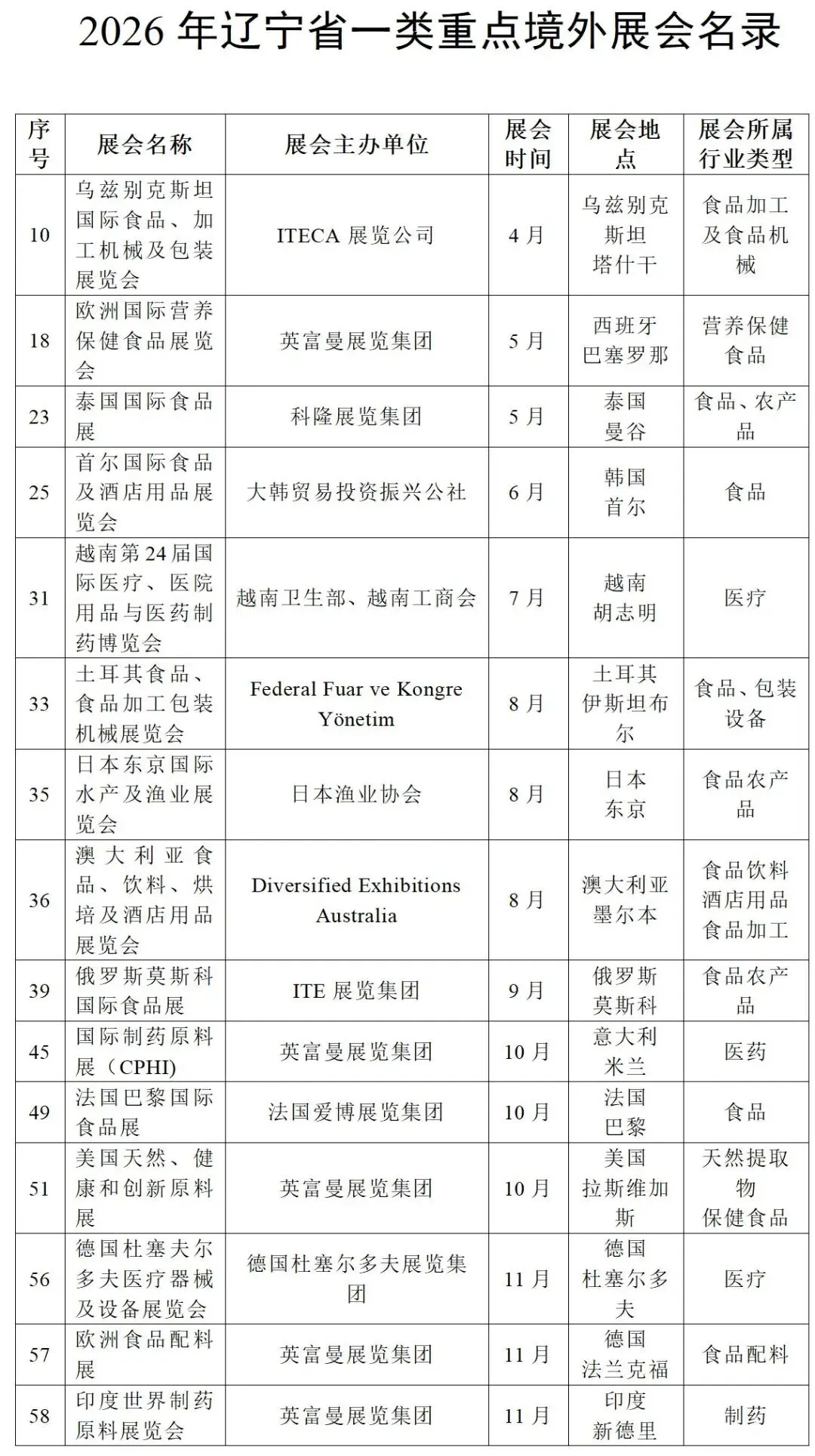 2026年辽宁省一类重点境外展会