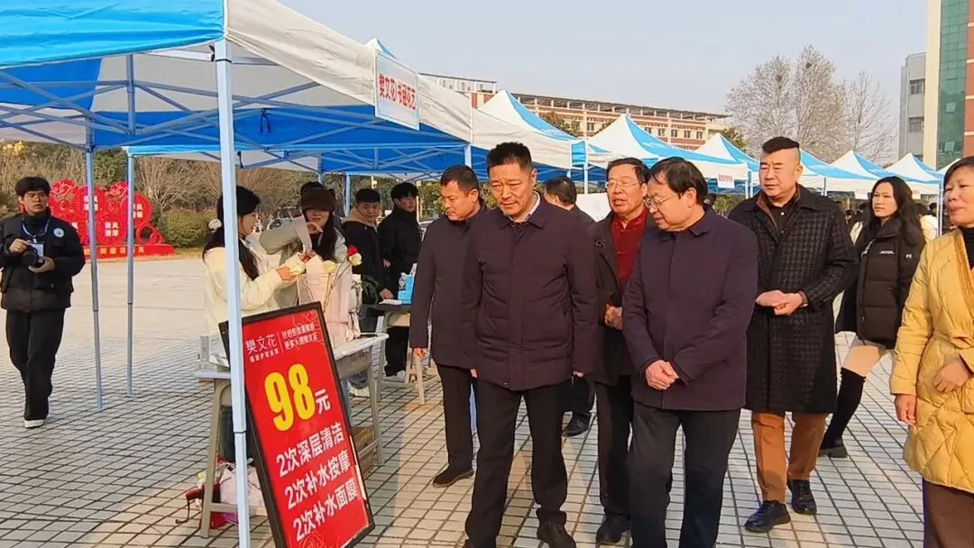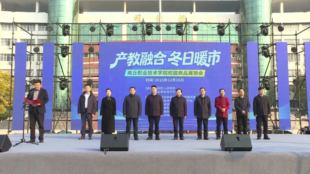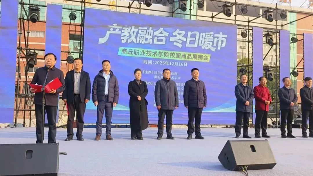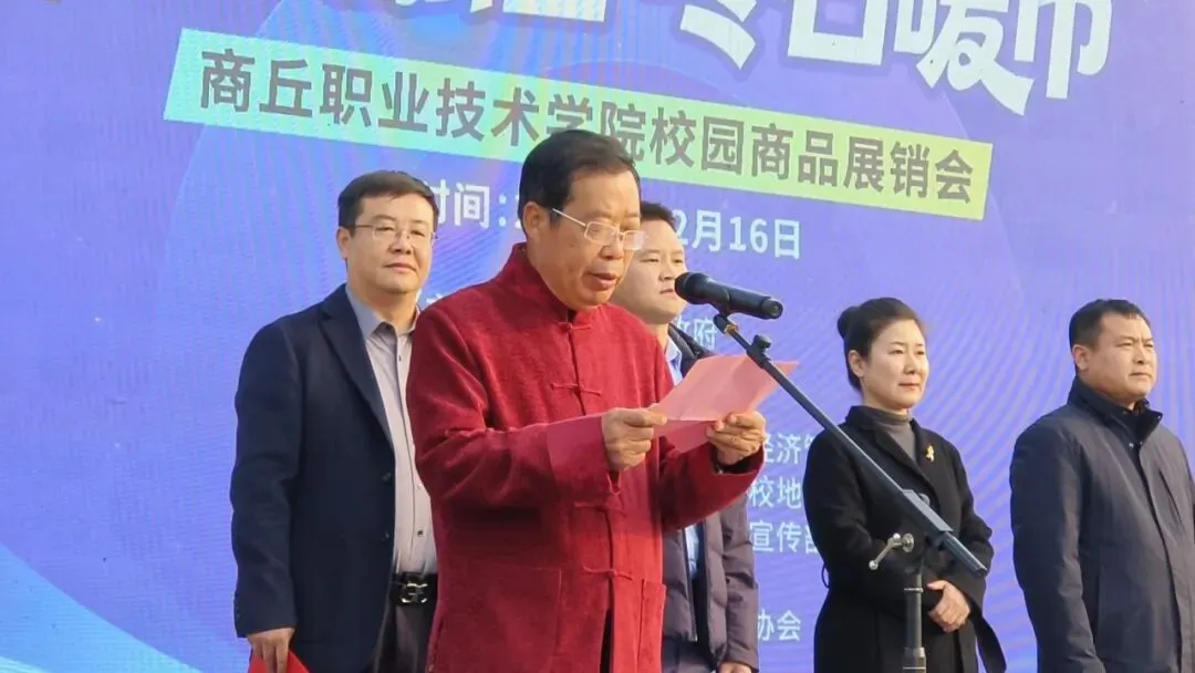 近日,由商丘职业技术学院、睢阳区人民政府联合主办的“产教融合·冬日暖市”校园商品展销会在商丘职业技术学院举行。校党委书记、校长薛明志等校领导,睢阳区委常委、区委办公室主任谢时冰,睢阳区副区长孟超等睢阳区领导,商丘市民间文艺家协会主席张学勇出席本次活动。