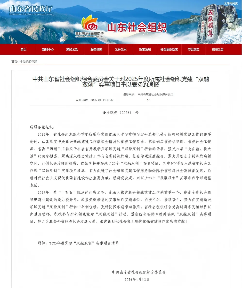 来源:山东省民政厅、山东省社会组织综合委员会