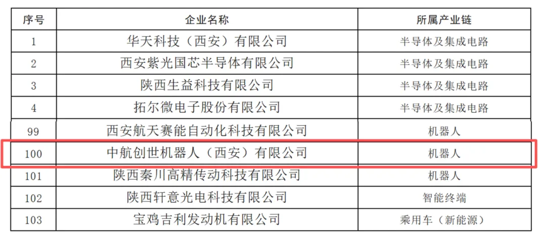 近日,陕西省工业和信息化厅发布了《陕西省重点产业链第二批“链主”企业拟确定名单》,凭借在机器人领域领先的技术创新实力、扎实的产业实践与突出的生态带动作用,中航创世机荣耀入选陕西省机器人产业链链主企业。