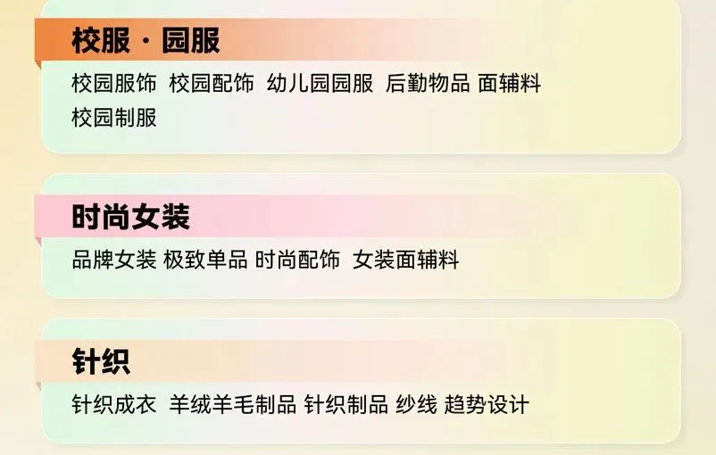 针织主题展作为针织羊绒产业年度盛会,汇聚针织设计力量与顶尖羊绒生产商,既是新一季产品首发站,也是买手采购的一站式中心。从纱线创新到成衣趋势,从柔性供应链到品牌商业对接,打造引领针织行业的风向标盛会。