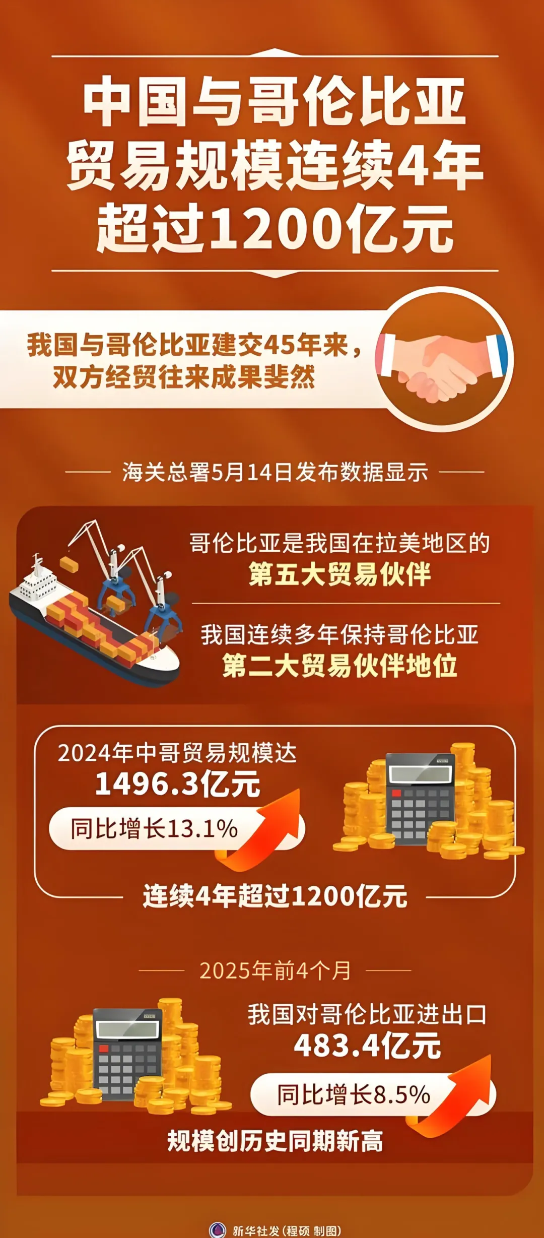 中国与哥伦比亚贸易规模连续4年超过1200亿元。
