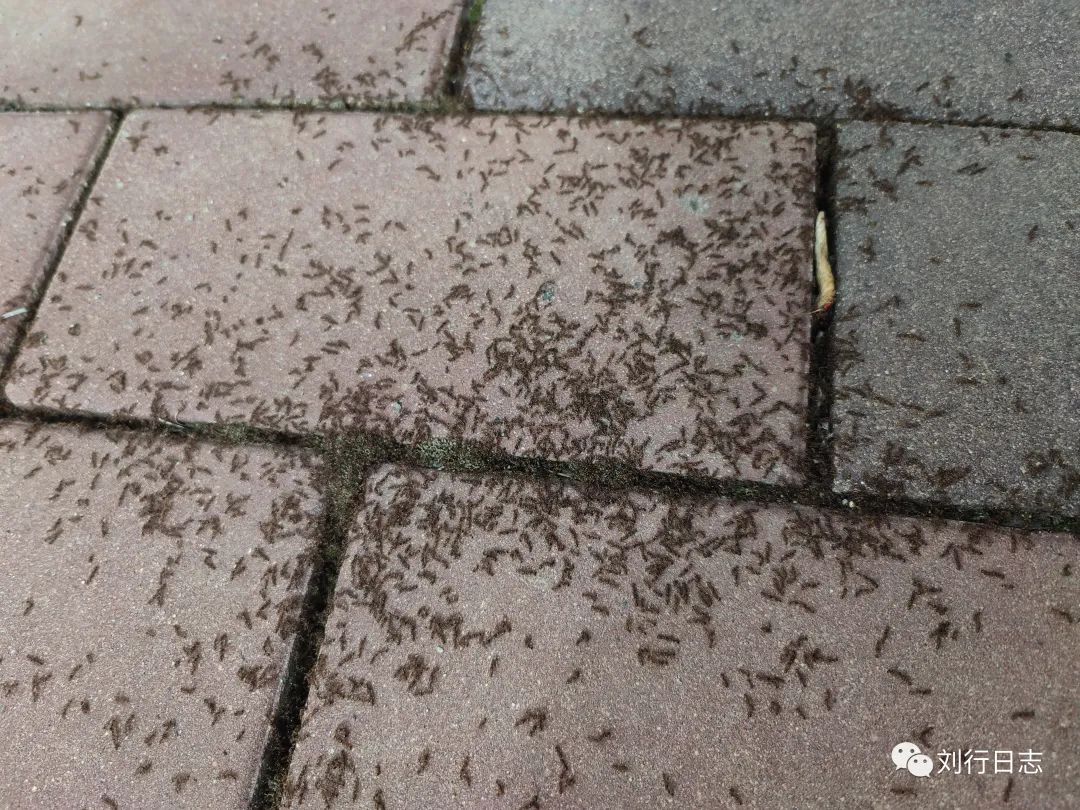 刚刚聊天说到蚂蚁,就在路上看到一窝。这窝蚂蚁规模还挺大的,密密麻麻一大片。