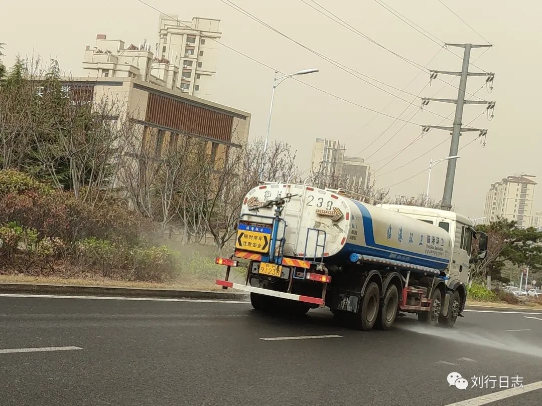 今天的洒水车换样式了,那个有大水枪的车没来。