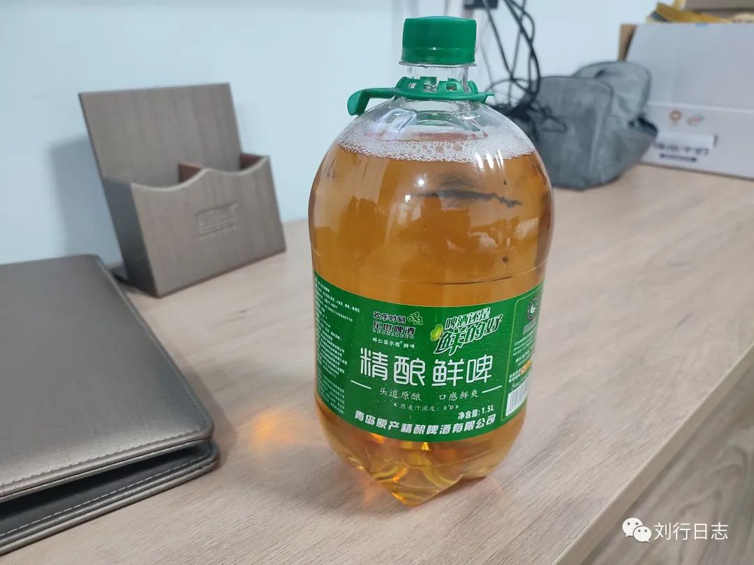 昨天网上买的啤酒,一升半一瓶,三个人喝了一瓶,还剩下五瓶。去年喝过这种啤酒,觉得味道还可以,这次网上没有单瓶的卖,只能买一包了。