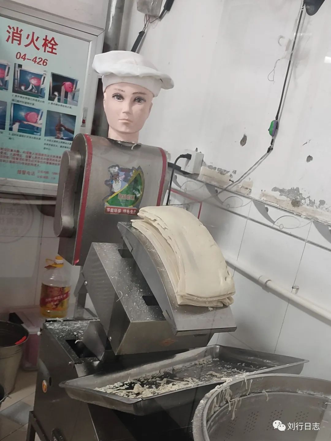 在这吃了这么多天饭,都没注意到还有个会削面的机器人,还是别人提醒,才注意到它。这个机器人是机器+假人,削面是前面的机器,后边的假人负责监督,能想出这么个创意,也算是个人才,比单独放个机器生动多了。