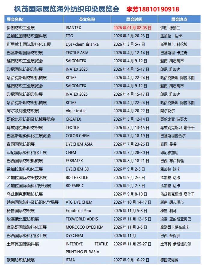 枫茂国际展览-2026染料化工展重点展会推介