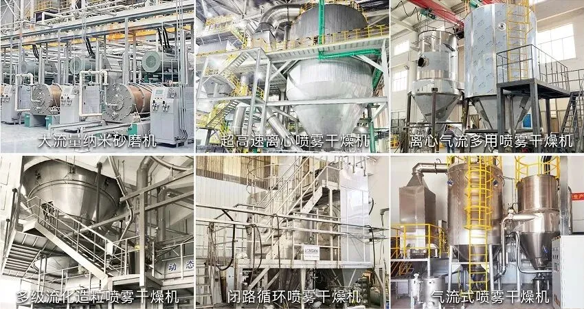 ① 超高速离心喷雾干燥机:配备全栈自主研发的新型离心雾化器,颗粒球形度高、流动性更好;