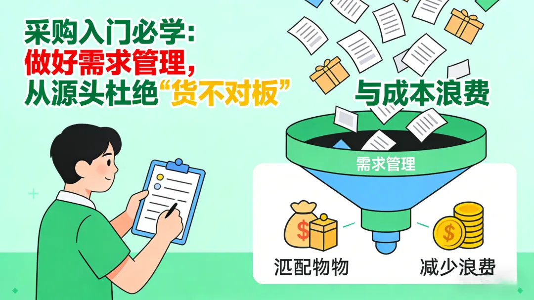 很多采购新手误以为“采购的核心是找供应商、砍价格”,却忽略了最基础的一步——需求管理。实际上,采购工作的源头是“需求”,需求不清晰、不规范、不可控,后续的寻源、谈判、履约都会陷入被动,甚至引发一系列成本浪费和工作纠纷。