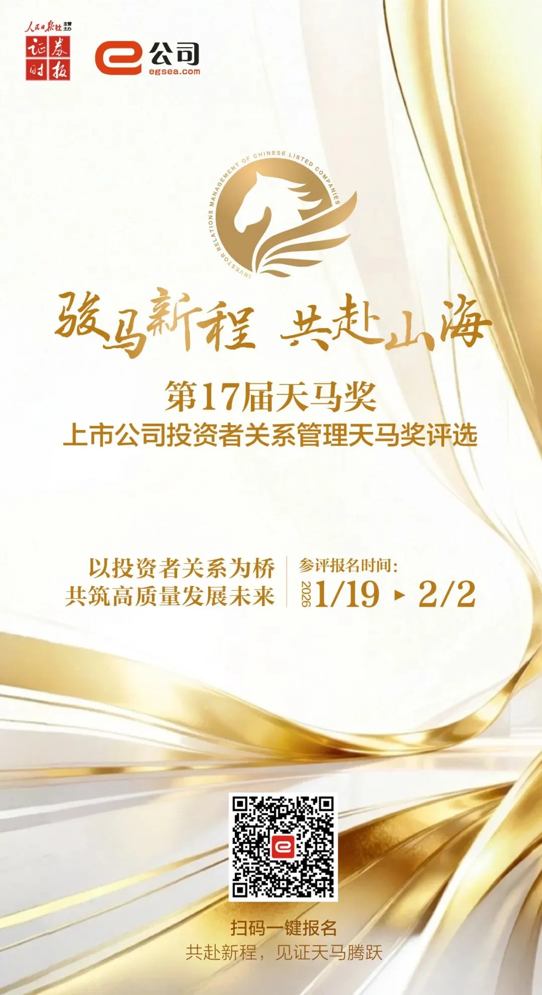 投资者关系管理是上市公司主动向市场传递价值、稳定预期、推动公司估值合理反映的关键途径,是落实监管层关于投资者保护和市值管理的重要手段。第十七届天马奖将继续坚持高标准,遴选信息披露规范、投关机制健全、沟通成效显著的上市公司,以此推动上市公司与投资者之间的双向沟通与良性互动,促进投资者关系管理水平整体提升,助力资本市场高质量发展。