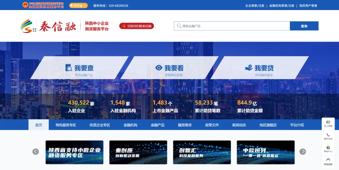 1月16日,由省发改委主导建设、集团所属陕西数字金服科技有限公司(以下简称陕西数科)负责运营的省级融资信用服务平台——陕西中小企业融资服务平台3.0版(“秦信融”平台)迭代升级,正式上线试运行。