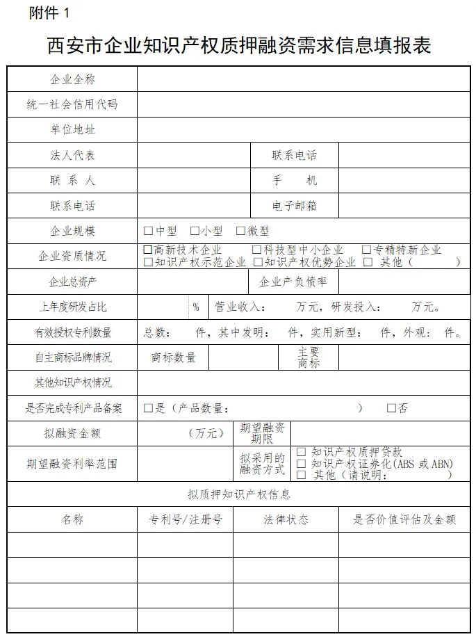 为深化落实《陕西省知识产权金融支持企业创新发展的若干措施(2025-2027年)》和《西安市促进专利转化运用保护若干措施》,拓宽企业融资渠道,缓解企业融资困难,促进知识产权与金融深度融合,服务我市科技企业创新发展,现面向全市企业征集知识产权质押融资需求,具体通知如下。