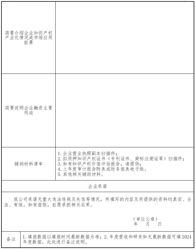 (四)相关单位要严格保密企业信息,本次融资需求信息仅用于知识产权质押融资对接服务工作。