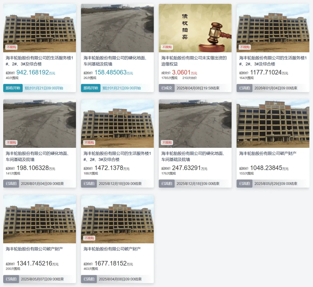 详情: 这个曾计划投资20亿元、立志年产1200万条子午胎的潍坊“明星项目”,在2012年开工后不久便陷入停滞,烂尾十余年后终因资不抵债被法院裁定破产。根据最新拍卖公告,其位于滨海经济开发区的核心资产(包括生活服务楼、综合楼及车间基础等)总评估价近2457万元,但起拍价已降至约1100万元,仅为评估价的4.5折。这标志着该企业从雄心勃勃的“大干快上”彻底走向了资产清算的终局。
