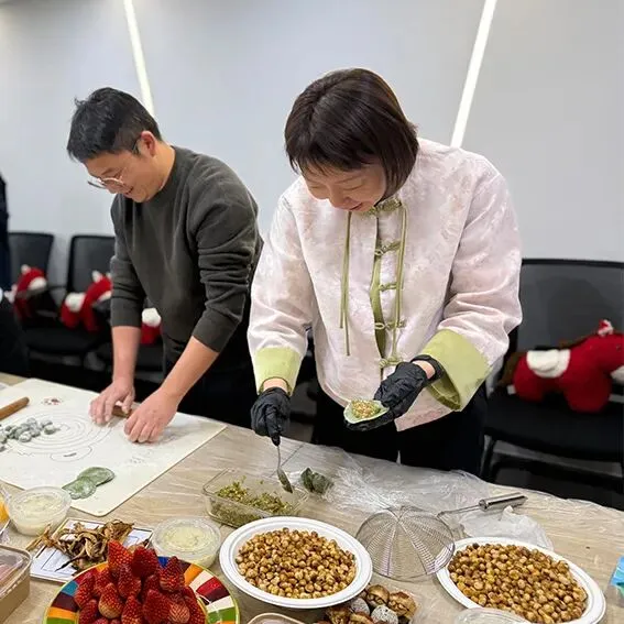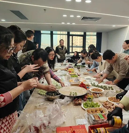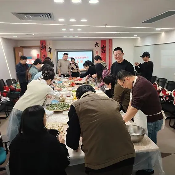 案板上,面团与馅料早已备好,等待着巧手的点化。平日里运筹帷幄的会展人,此刻化身面点巧匠,揉面、擀皮、填馅、捏褶,动作行云流水。有的同事包出的饺子玲珑精致,宛如艺术品;有的则憨态可掬,充满了家的味道。指尖的温度传递着温暖,一捏一褶间包裹着对新年的期许。