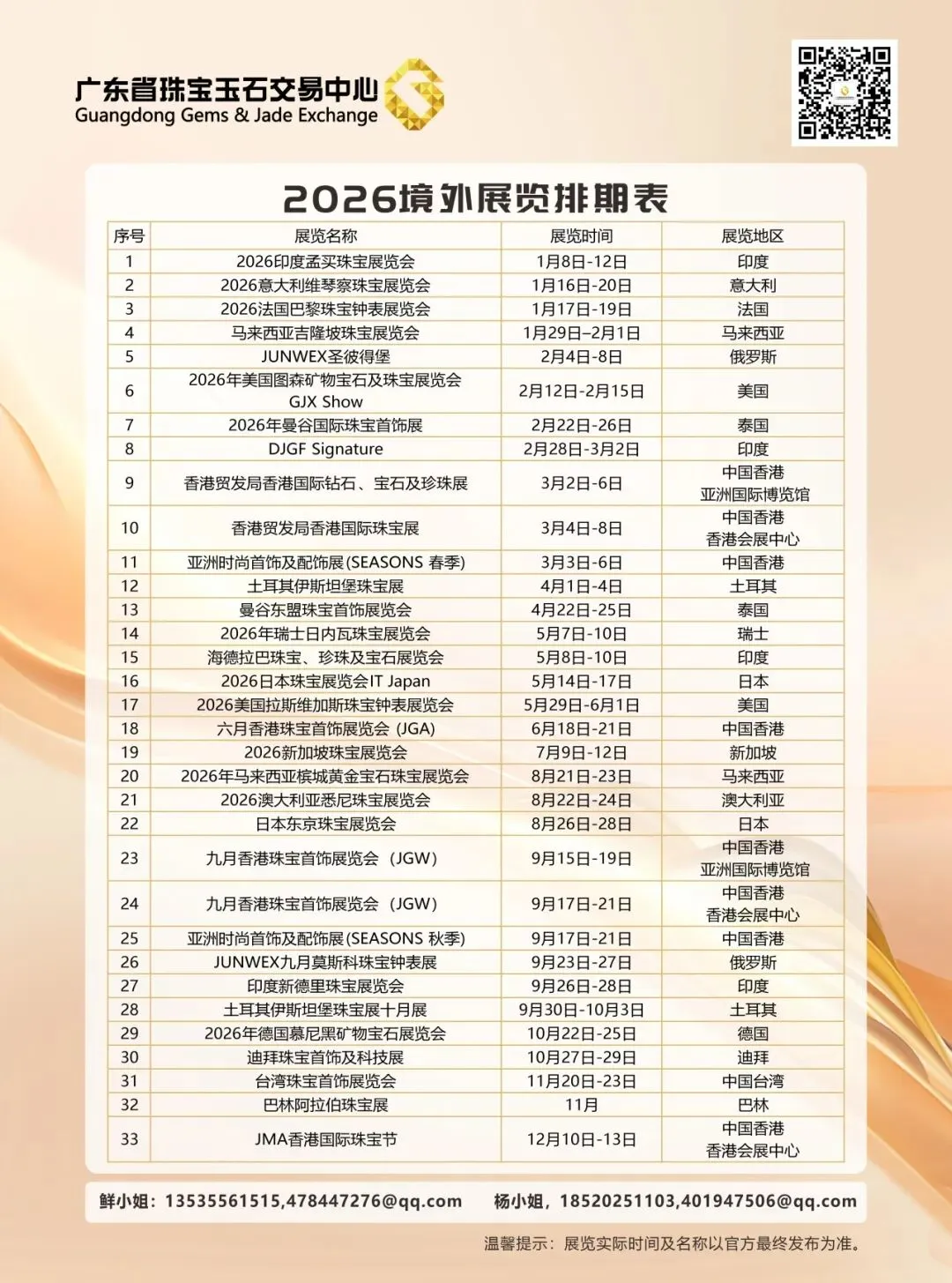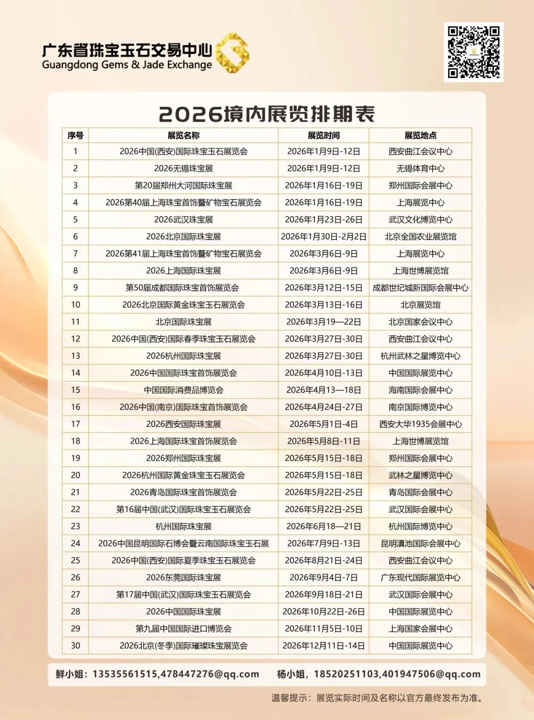 为助力会员单位拓展行业资源、把握参展商机,广宝中心面向全体会员提供珠宝展览参展、观展全流程常态化服务。以下是2026年境内外主要珠宝展览时间表,供广大展商参考。