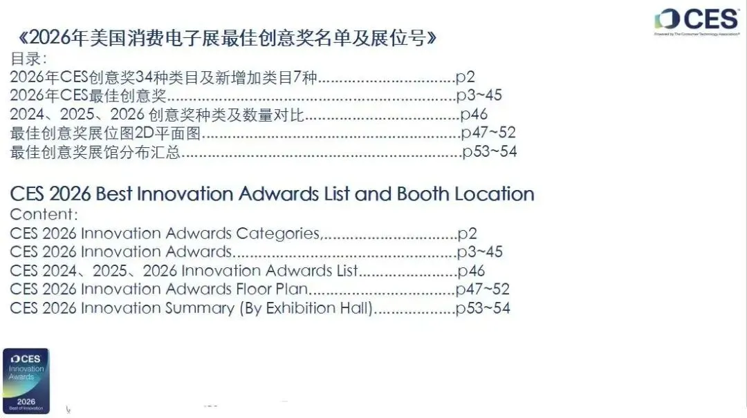 《2026年美国消费电子展CES 创意奖 及 最佳创意奖名单及展位号》