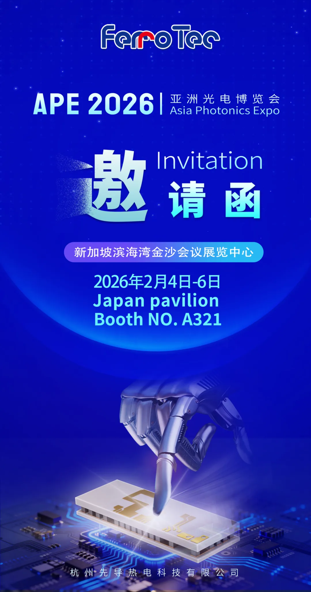 FerroTec杭州先导热电科技有限公司是全球半导体热电制冷领域的专家,深耕行业研究30余年,不断在光通信领域进行研究拓展。其热电半导体制冷片和制冷模组被广泛应用于数据中心、5G通信市场、国内骨干网市场、接入网市场等。FerroTec的致冷器具有可靠性高、稳定性好、一致性强、长寿命、制冷速度快、制冷温度深、效率高等特点,成为全球诸多知名光通信企业的长期合作伙伴。