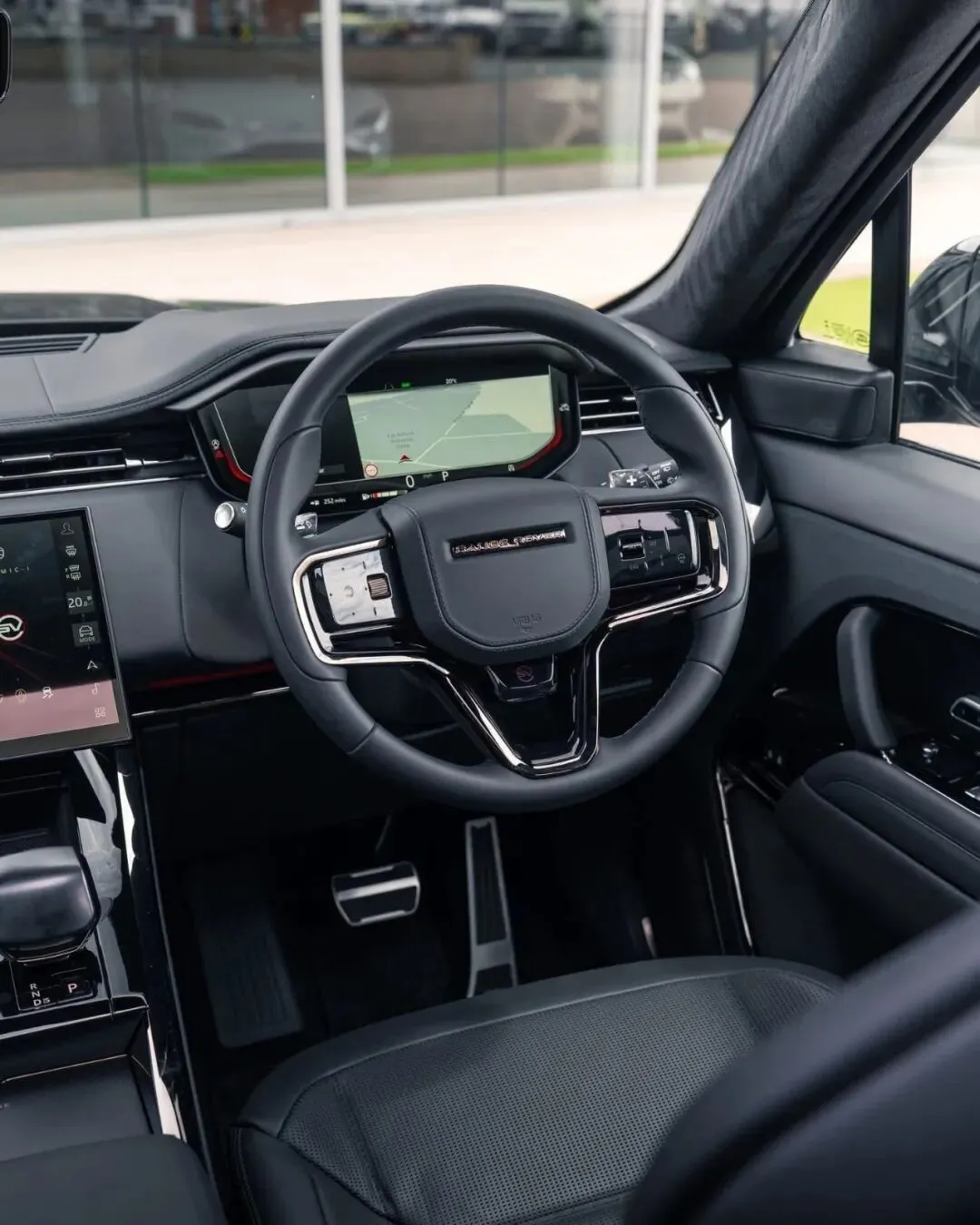 进.入车内,这.内饰我得说.一句:真舍得花.钱。13.1寸.中.控+13.7寸.仪表,这个.已经是揽胜系顶配水准.了。